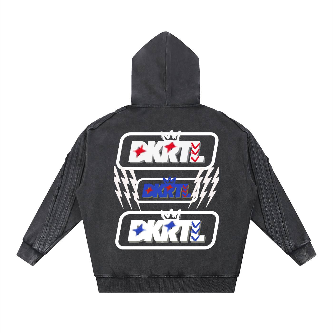 Snow Washed Tape Raw Edge Zip Hoodie